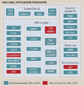 我們利用管理系統(tǒng)總線的豐富經(jīng)驗(yàn)來(lái)獲得最優(yōu)的處理器——在性能和能量消耗之間找到最佳平衡。我們基于ARM926內(nèi)核的CPU平臺(tái)(用于第二代i.MX解決方案)利用多主縱橫交換機(jī)設(shè)計(jì),旨在使多個(gè)主件(包括CPU)能與多個(gè)附屬設(shè)備(外圍設(shè)備)同時(shí)對(duì)話。這類交換機(jī)設(shè)計(jì)已經(jīng)在大型高速數(shù)據(jù)網(wǎng)絡(luò)中使用了一段時(shí)間,不過(guò)目前我們已經(jīng)成功地將該技術(shù)轉(zhuǎn)移到便攜式無(wú)線環(huán)境?v橫交換機(jī)通過(guò)讓所有引擎輸入數(shù)據(jù)和指令來(lái)最大化系統(tǒng)性能,因而幾乎沒(méi)有“停滯時(shí)間”并減少了對(duì)其它要完成數(shù)據(jù)傳輸?shù)摹暗却薄?BR> 改進(jìn)的性能不是為了通過(guò)加快時(shí)鐘來(lái)獲得更高CPU頻率,而是利用現(xiàn)有速度,從整個(gè)系統(tǒng)獲得更高的效率,不必浪費(fèi)處理過(guò)程中的任何時(shí)間或精力。當(dāng)我們從GSM(全球移動(dòng)通信系統(tǒng))轉(zhuǎn)移到非常高級(jí)和功能豐富的技術(shù)中時(shí),例如分組無(wú)線系統(tǒng)(GPRS)、GSM改進(jìn)的增強(qiáng)數(shù)據(jù)(EDGE)和通用移動(dòng)通信系統(tǒng)(UMTS),這將變得更加重要。智能電話和PDA有望采用綜合業(yè)務(wù),也可能包括藍(lán)牙技術(shù)和802.11 WLAN功能,所有這些都要求增加功能更強(qiáng)大、更有效的處理器。