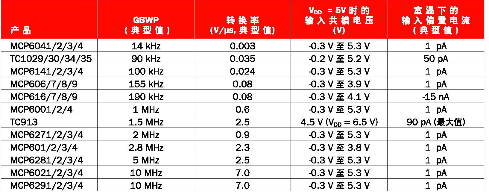 截止頻率確定后,選擇具備正確帶寬的放大器就很容易了。放大器的閉環(huán)帶寬必須比濾波器的截止頻率至少高100倍。如果采用的是Sallen-Key型電路配置,且濾波器增益為+1V/V,那么,放大器的增益帶寬積(GBWP)應(yīng)大于等于100fc。如果閉環(huán)增益大于+1V/V, 則GBWP應(yīng)大于等于100GCLNfc,其中GCLN等于濾波器的非反相閉環(huán)增益。如果采用的是多反饋電路配置,放大器的GBWP應(yīng)大于等于100*(-GCLI+1)fc,其中GCLI等于閉環(huán)系統(tǒng)的反相增益。表1列出了Microchip運放的增益帶寬積。