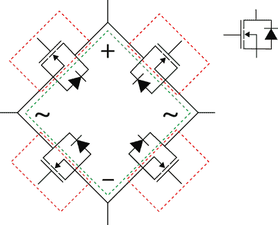 圖3 可以直接替代現(xiàn)有二極管全波橋式整流器的集成動(dòng)態(tài)橋式器件。