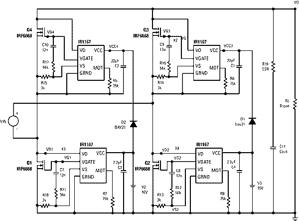 圖 2 基于IRF1166/7的簡(jiǎn)單離散式整流方案。