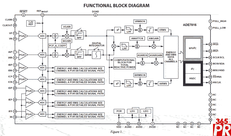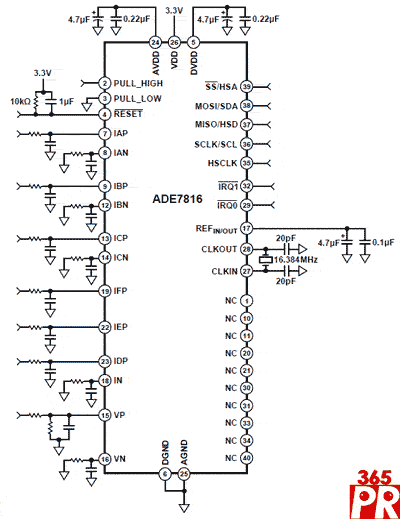 ADE7816電能計量IC采用3.3 V電源供電,提供40引腳LFCSP封裝,無鉛且符合RoHS標準。下載數(shù)據(jù)手冊,請訪問http://www.analog.com/static/imported-files/data_sheets/ADE7816.pdf