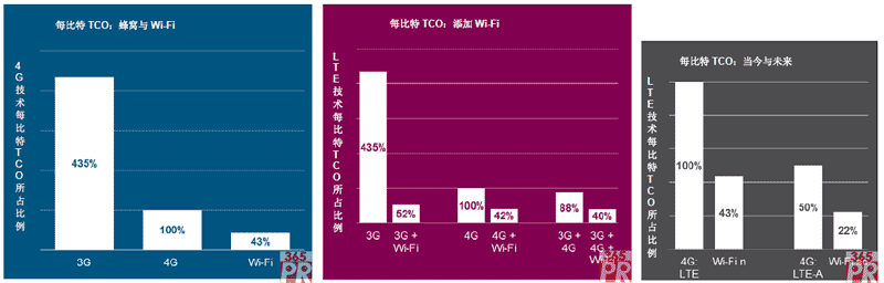 Senza Fili咨詢公司在受Wi-Fi Alliance委托編寫的一份近期白皮書4中提供了一份總擁有成本(TCO)的分析。分析結(jié)果表明,Wi-Fi的每比特TCO要低于3G和4G的每比特TCO。Wi-Fi的每比特TCO僅為4G每比特TCO的43%。此外,Wi-Fi的每站點(diǎn)TCO是蜂窩網(wǎng)絡(luò)每站點(diǎn)TCO的62%,僅供參考。