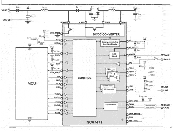 在仔細選擇轉(zhuǎn)換器架構(gòu)的情況下,采用開關(guān)模式DC-DC轉(zhuǎn)換的SBC能為使用自動停止-啟動(或微混合)技術(shù)的較新型車提供重要優(yōu)勢。自動停止-啟動技術(shù)在汽車停下來(如等候交通信號燈)時關(guān)閉發(fā)動機,能夠降低市區(qū)行駛的燃油消耗約15-20%;當駕駛員踩下加速踏板(油門)時,發(fā)動機自動重啟,使系統(tǒng)有效地工作,而且這個過程對駕駛?cè)藛T而言是透明的。為了確保CAN總線上的所有系統(tǒng)都能夠持續(xù)恰當?shù)匕l(fā)揮功用,應(yīng)用必須保持全面工作,即使是在發(fā)動機啟動期間電池電壓降至2.5V那么低時,也是如此。在這種情況下,升壓-降壓DC-DC拓撲結(jié)構(gòu)使SBC能夠在所有工作條件下提供所要求的穩(wěn)壓輸出電壓。