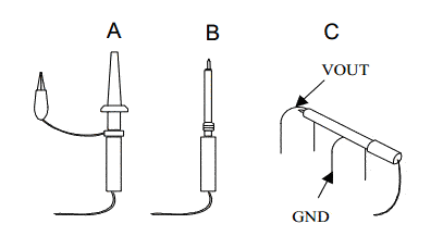 C: 然后直接把探頭的金屬端和輸出端連接,探針的地線部份和線路板的地線連接,這樣可以有效的防止外界噪聲的干擾。