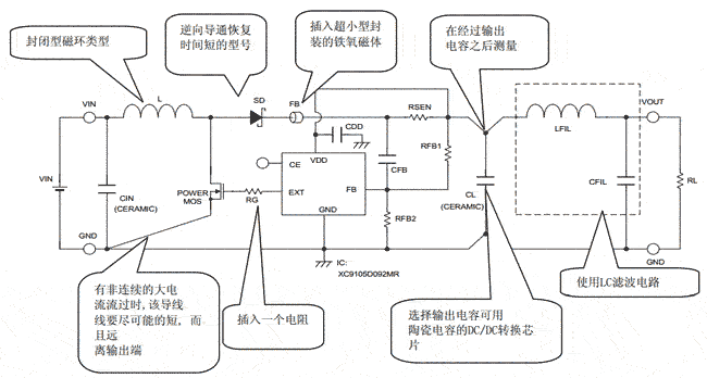 6. 當電路中有非連續(xù)的大電流流過時, 外置開關管和線圈之間的導線要盡量的短,而且盡量遠離輸出接地端;
