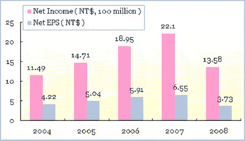 2008年,全球經(jīng)濟(jì)環(huán)境產(chǎn)生急速變化,許多企業(yè)在經(jīng)濟(jì)動(dòng)蕩影響下,都由原先的獲利瞬間轉(zhuǎn)變?yōu)榇蠓潛p。但億光去年第四季稅前仍獲利約新臺(tái)幣8,600萬(wàn)元,持續(xù)保持著收支平衡的水平。