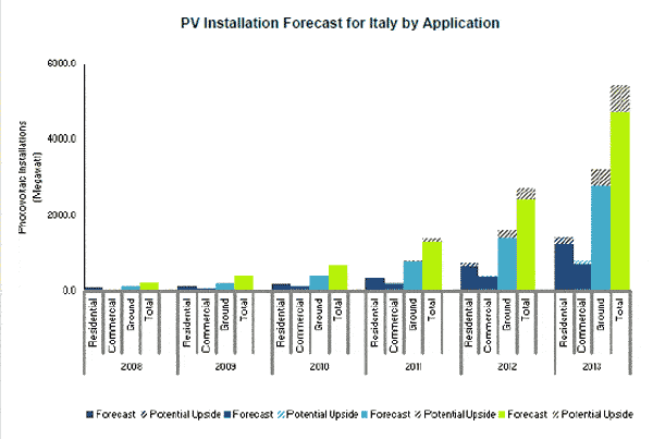 【產通社,12月4日訊】iSuppli公司最新報告“光伏安裝—全球性回升(PV Installations – A Global Rebound)”預測,如果主要市場保持目前的趨勢,則2010年光伏裝機市場或將增長60%,因為我們沒有在意大利、加州及整個美國、法國和西班牙看到任何不利因素。