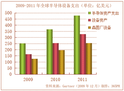 2009-2011年全球半導(dǎo)體資產(chǎn)設(shè)備支出(單位:億美元)