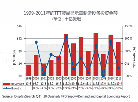 TFT LCD建廠與擴(kuò)廠設(shè)備支出在2010年達(dá)到高峰