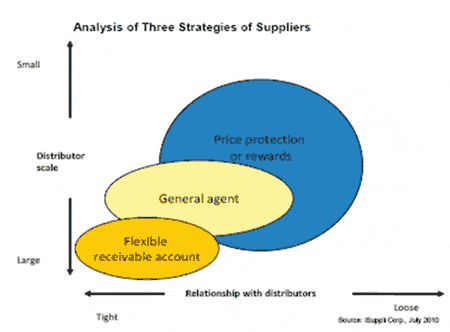 在第三種策略適合大型原廠和分銷商之間的合作,原廠通過靈活的應收賬款策略來和代理商伙伴共同建立庫存。合作的基礎是雙方的財務狀況都比較健康,特別是要有好的現(xiàn)金流。這種策略還可以加強原廠和大型分銷商之間的伙伴關系。另外,大型分銷商將繼續(xù)推行并購策略,隨著本土分銷商的快速成長,它們正在成為收購目標。