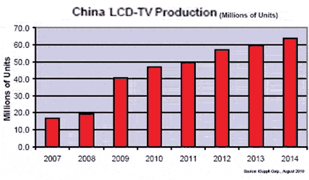隨著技術(shù)的進一步發(fā)展,預(yù)計中國液晶電視產(chǎn)量到2014年將達到6390萬臺。