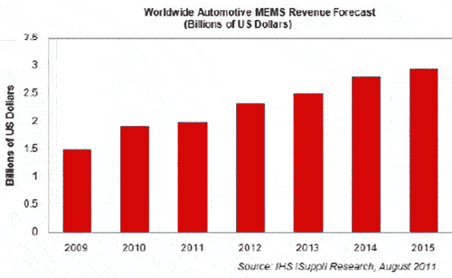 汽車MEMS市場滑坡,緣于日本地震不但影響了日本的制造業(yè),而且沖擊了全球的生產。日本是汽車MEMS主要生產地。汽車傳感器用于改善汽車性能和舒適性,同時提高安全性,廣泛用于安全氣囊、輪胎壓力監(jiān)測和汽車穩(wěn)定性控制。