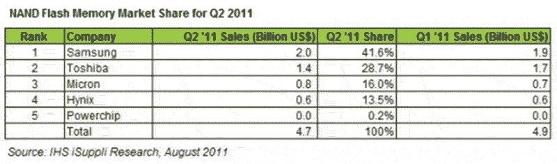 盡管東芝遇到麻煩,但業(yè)內(nèi)其它廠商在這個(gè)淡季的表現(xiàn)很好。三星,以及排名第三的美國美光和排名第四的韓國海力士半導(dǎo)體,總體營(yíng)業(yè)收入都實(shí)現(xiàn)增長(zhǎng)。總體來看,第二季度這三家廠商都擴(kuò)大了市場(chǎng)份額,而東芝則為此付出代價(jià)。