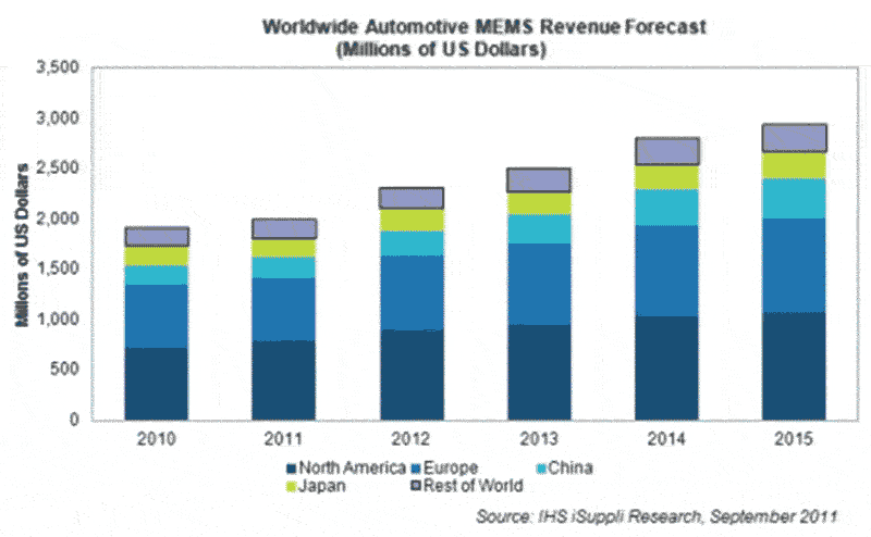 在汽車(chē)中使用基本引擎?zhèn)鞲衅鹘档吞寂欧,也將推?dòng)汽車(chē)MEMS在中國(guó)的發(fā)展,尤其是中國(guó)采納了歐洲的規(guī)則。