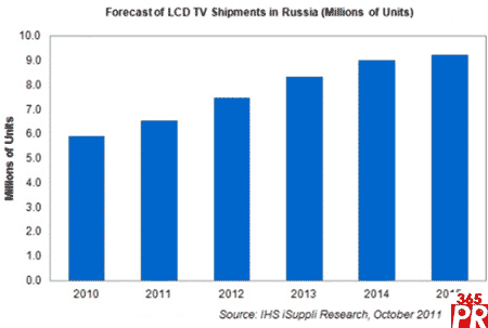 【產(chǎn)通社,10月20日訊】據(jù)IHS iSuppli公司的電視研究報告,隨著青睞先進(jìn)電視技術(shù)的中產(chǎn)階級不斷壯大,今年俄羅斯液晶電視出貨量預(yù)計強(qiáng)勁增長10%。俄羅斯屬于所謂的金磚國家(BRIC),是一個重要市場。