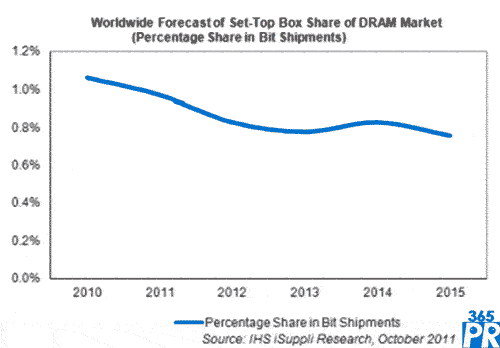 IHS公司認(rèn)為,隨著機(jī)頂盒在DRAM市場(chǎng)中的份額穩(wěn)步下降,機(jī)頂盒將被邊緣化。難以想像,機(jī)頂盒在DRAM市場(chǎng)中的影響力將來(lái)能跟上其它產(chǎn)品,超越其它產(chǎn)品更是不可能的事情。查詢進(jìn)一步信息,請(qǐng)?jiān)L問(wèn)http://www.isuppli.com。