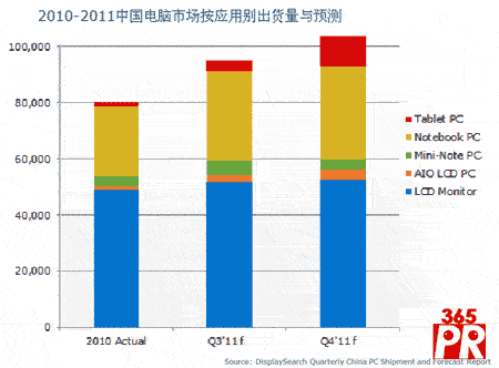 【產(chǎn)通社,11月23日訊】根據(jù)最新季度中國(guó)PC市場(chǎng)報(bào)告,DisplaySearch將中國(guó)電腦出貨量的預(yù)測(cè),包括臺(tái)式電腦、一體機(jī)和移動(dòng)電腦(包括筆記本電腦、上網(wǎng)本和平板電腦),從原先的9500萬(wàn)臺(tái)提高到了1億臺(tái)。