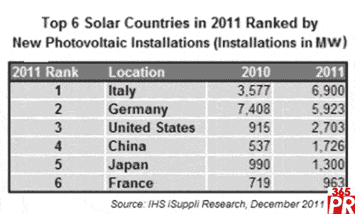 但是,由于意大利政府實(shí)行有吸引力的電價(jià)政策并調(diào)整了補(bǔ)貼計(jì)劃,意大利今年新增太陽(yáng)能發(fā)電容量高于其它國(guó)家,預(yù)計(jì)將達(dá)6.9MW,這足以使其成為全球最大的光伏市場(chǎng)。去年是德國(guó)以7.4GW排名第一,而意大利以3.6GW排名第二。