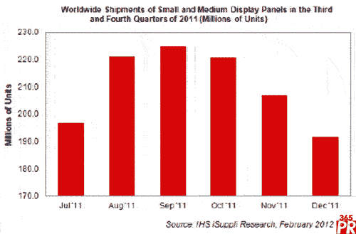 由于市場情況不佳,預計2012年第一季度出貨量將繼續(xù)環(huán)比下降。此外,全球經(jīng)濟疲軟,中國和印度經(jīng)濟全面放緩,將在今年上半年繼續(xù)給設備與顯示器市場帶來不確定性。中國和印度是兩大快速增長的SMD面板市場。