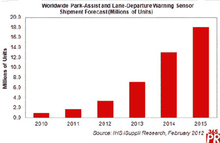 【產(chǎn)通社,2月16日訊】自動車是指幾乎不用人工干預、可以自動行駛的汽車,它很可能代表未來的駕駛潮流。據(jù)IHS公司的汽車研究報告,幫助創(chuàng)造這種工程奇跡的汽車傳感器市場目前已經(jīng)出現(xiàn),而且未來幾年將保持高速增長。泊車輔助攝像頭與車道偏離警告攝像頭,只是將出現(xiàn)在自動駕駛應用中的傳感器中的兩類,未來五年預計每年都會強勁增長。這類傳感器2012年出貨量預計將達340萬個,是去年170萬個的兩倍,到2015年將達到1800萬個左右,幾乎是2010年939200個的20倍。