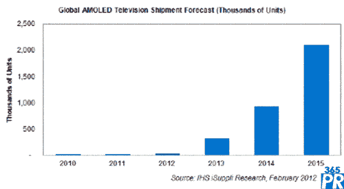 【產(chǎn)通社,2月16日訊】盡管AMOLED電視在上月的消費(fèi)電子展(CES)上露面令人振奮,但由于制造困難和原材料成本高昂,未來幾年這種電視的全球出貨量將非常有限。據(jù)IHS iSuppli公司的中小顯示器研究報(bào)告,2015年全球AMOLED電視出貨量預(yù)計(jì)將達(dá)到210萬臺(tái),而2012年只有3.4萬臺(tái)。雖然增幅巨大,但到2015年AMOLED電視在全球平板電視市場中的份額仍然將只有1%。
