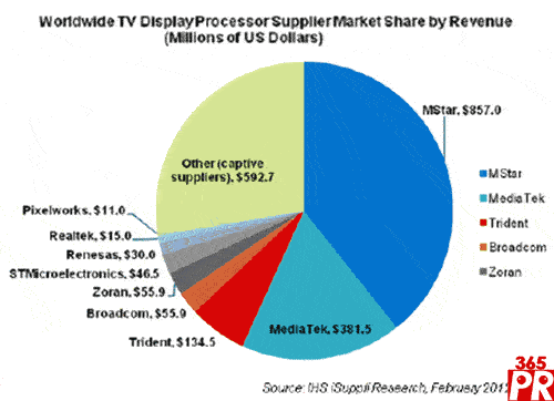 2011年臺(tái)灣廠商晨星和聯(lián)發(fā)科主宰電視SoC市場