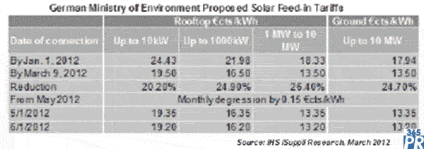 根據(jù)新方案,10MW以上的大型系統(tǒng)從3月9日開始將得不到任何FIT。另外,從2012年5月1日開始,每千瓦時(shí)電費(fèi)將每月下降0.0015歐元,代替每年通常在1月降低FIT的做法。