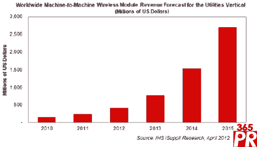 【產(chǎn)通社,5月10日訊】據(jù)IHS iSuppli公司的無線通訊專題報告,2012年包括燃氣表、電表與水表等在內(nèi)的公用事業(yè)市場,將是機器對機器(M2M)模組增長最快的垂直市場。這些模組可以讓設(shè)備彼此之間進行無線通訊。