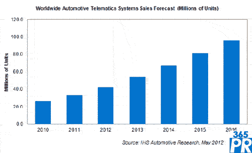 【產(chǎn)通社,5月10日訊】據(jù)IHS公司的汽車研究專題報(bào)告,駕車者與車廠都渴望在汽車中提供無線連接,這將驅(qū)動(dòng)全球汽車遠(yuǎn)程信息處理系統(tǒng)產(chǎn)業(yè)在未來幾年實(shí)現(xiàn)強(qiáng)勁的兩位數(shù)增長速度。預(yù)計(jì)今年全球遠(yuǎn)程信息處理系統(tǒng)銷量將達(dá)到4230萬個(gè),比2011年的3330萬個(gè)勁增27%。今年的預(yù)期增長率高于去年的25%,而明年增長將更加強(qiáng)勁,預(yù)計(jì)會(huì)增長28%至5410萬個(gè)。