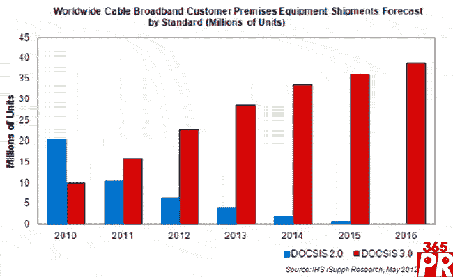 【產(chǎn)通社,5月30日訊】據(jù)IHS iSuppli公司的寬帶與數(shù)字家庭市場追蹤報告,2011年寬帶電纜運營商增加布署DOCSIS 3.0,使得該標(biāo)準(zhǔn)首次成為多數(shù)新寬帶有線設(shè)備的主要標(biāo)準(zhǔn)。