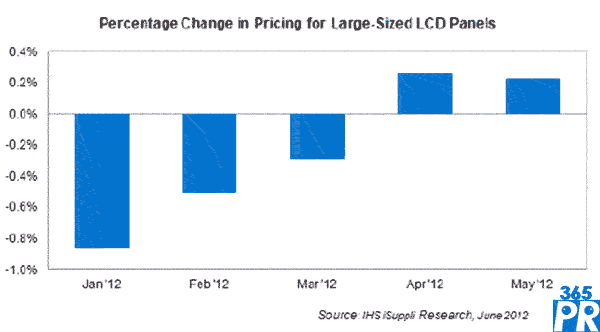 【產(chǎn)通社,6月27日訊】據(jù)IHS iSuppli公司的液晶顯示器(LCD)報告,廠商繼續(xù)謹(jǐn)慎控制產(chǎn)量和庫存,以抵消電視、監(jiān)視器和筆記本電腦等主要應(yīng)用領(lǐng)域的疲弱需求,5月大尺寸LCD面板價格微漲。