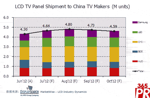 【產(chǎn)通社,8月9日訊】根據(jù)NPD DisplaySearch最新報(bào)告,出貨至中國大陸廠商液晶電視面板如預(yù)期取得成長,但成長率(M/M)較此前預(yù)期的14%低8個(gè)百分點(diǎn)。與5月份一樣,由于需求成長低于預(yù)期,大陸電視廠商面板和整機(jī)庫存依然處于高位,終端拉動(dòng)乏力和高庫存是6月份面板出貨低于預(yù)期最主要的原因。并且,受6月開始的能效補(bǔ)貼的實(shí)施,中國電視廠商推遲對(duì)未達(dá)到能效標(biāo)準(zhǔn)面板的采購,加之能效補(bǔ)貼對(duì)消費(fèi)需求拉動(dòng)效應(yīng)并未在實(shí)施當(dāng)月完全顯現(xiàn),從而造成較高的渠道庫存。