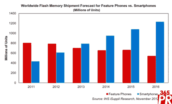IHS iSuppli公司認(rèn)為,功能手機(jī)仍然是一個(gè)關(guān)鍵領(lǐng)域,可以滿足許多地區(qū)快速擴(kuò)大和可能帶來(lái)贏利的人口,這將有利于閃存市場(chǎng)。確實(shí)是這樣,盡管預(yù)計(jì)智能手機(jī)將迅猛增長(zhǎng)。查詢進(jìn)一步信息,請(qǐng)?jiān)L問(wèn)官方網(wǎng)站http://www.ihs.com,以及http://www.isuppli.com。