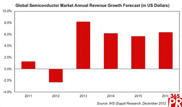 【產(chǎn)通社,12月13日訊】據(jù)IHS iSuppli公司的半導(dǎo)體制造與供應(yīng)市場追蹤報告,全球經(jīng)濟(jì)低迷帶來壓力,將導(dǎo)致年度全球半導(dǎo)體營業(yè)收入收縮,回吐去年該產(chǎn)業(yè)錄得的增幅。今年半導(dǎo)體營業(yè)收入將為3030億美元,比2011年的3100億美元下降2.3%。這與去年增長1.3%形成鮮明對比。