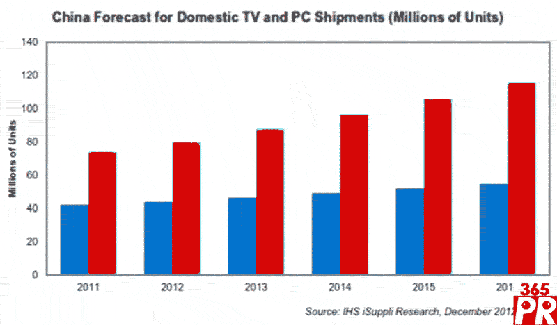 【產(chǎn)通社,12月13日訊】據(jù)IHS iSuppli公司的中國(guó)研究專題報(bào)告,PC既能提供互聯(lián)網(wǎng)接入,也能提供視頻觀看能力,將繼續(xù)在多數(shù)中國(guó)家庭中充當(dāng)媒體中心,但內(nèi)置互聯(lián)網(wǎng)連接功能的電視將成為其主要對(duì)手,并將試圖在未來(lái)幾年內(nèi)奪取PC的地位。一項(xiàng)關(guān)于中國(guó)消費(fèi)電子產(chǎn)品市場(chǎng)的研究顯示,較多的用戶與家庭青睞使用PC或電視作為提供視頻等媒體內(nèi)容及實(shí)現(xiàn)寬帶連接的工具,而不是高清機(jī)頂盒或網(wǎng)絡(luò)電視機(jī)頂盒。