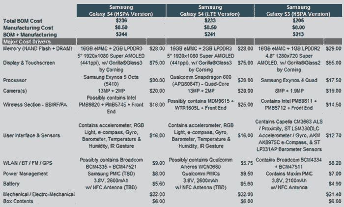 以上的分析是針對(duì)Galaxy S4支持HSPA版本的分析,至于支持LTE版本的Galaxy S4由于系采用高通APQ8064T應(yīng)用處理器,成本也比HSPA版本便宜3美元。