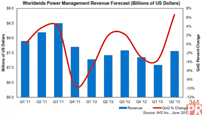【產(chǎn)通社,6月25日訊】據(jù)IHS公司的電源管理市場追蹤報告,第二季度電源管理半導(dǎo)體市場將取得兩年來的最快增長,從而給預(yù)期中的下半年快速增長拉開序幕。