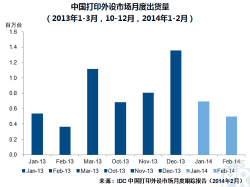 (2)企業(yè)及各大行業(yè)采購(gòu)需求同比明顯增加。IDC數(shù)據(jù)顯示,2014年1-2月,中國(guó)激光打印外設(shè)市場(chǎng)(不含數(shù)碼復(fù)合機(jī))整體出貨總量約為94.3萬(wàn)臺(tái),同比去年1-2月上漲36.5%。2013年1-2月,受到政府換屆等因素影響,打印機(jī)市場(chǎng)中行業(yè)需求表現(xiàn)低迷。而2014年前兩個(gè)月,激光產(chǎn)品的增長(zhǎng)主要來(lái)自于企業(yè)及行業(yè)用戶的采購(gòu)需求增加,特別是金融、醫(yī)療、電信等行業(yè)。金融、電信行業(yè)對(duì)于打印產(chǎn)品的升級(jí)換代需求不斷增加,而隨著電子病歷、電子處方的不斷普及,以及醫(yī)療網(wǎng)點(diǎn)數(shù)量的增加,醫(yī)療行業(yè)對(duì)打印機(jī)的購(gòu)買需求也在持續(xù)增長(zhǎng)。