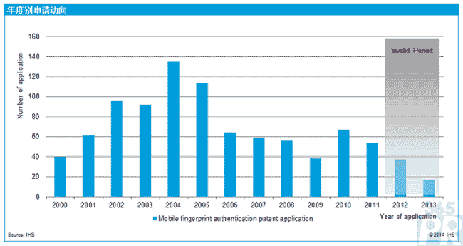 【產(chǎn)通社,5月23日訊】IHS消息,其針對(duì)2000年1月至2014年1月之間韓國(guó)、美國(guó)、日本、歐洲(公開/登記專利)的929件專利,分析了移動(dòng)裝置指紋識(shí)別技術(shù)領(lǐng)域的專利申請(qǐng)動(dòng)向(年度別、國(guó)家別、技術(shù)別、申請(qǐng)人別等)。