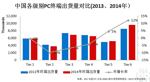 IDC中國終端系統(tǒng)研究,成像、打印與文檔解決方案研究,研究運(yùn)營中心總監(jiān)王吉平說:“盡管全國PC市場呈現(xiàn)萎縮態(tài)勢,但在人口占比很大的五六級市場PC仍然有較大的發(fā)展空間,也可以說PC還沒有完全滲透到低級別城市市場。IDC預(yù)計PC市場終端出貨量的增長點(diǎn)將出現(xiàn)在五六級市場,包括鄉(xiāng)鎮(zhèn)市場。盡管家電下鄉(xiāng)已經(jīng)結(jié)束一段時間,但是低級別市場的保有率仍然很低,未來的增長空間很大,第一次購機(jī)的消費(fèi)者還是PC市場增長的主力軍。同時,我們也看到了在一到三級市場中,由于消費(fèi)者對平板和大屏智能手機(jī)的應(yīng)用越來越多,導(dǎo)致高級別市場的PC終端銷售量下滑較為嚴(yán)重,這也是中國PC家用市場保有量出現(xiàn)負(fù)增長的主要原因。”