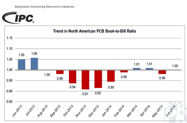 北美地區(qū)6月份PCB行業(yè)的訂單出貨比達(dá)到平衡點(diǎn)1.00。