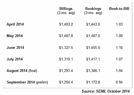根據(jù)SEMI最新出爐的BB值報告顯示,北美半導體設備制造商今年9月訂單出貨比B/B值為0.94,代表半導體設備業(yè)者當月出貨100美元,接獲94美元的訂單,宣告中止自去年10月以來、連續(xù)11個月守穩(wěn)1的格局。自去年10月以來至今年8月,北美BB值已連續(xù)11月守穩(wěn)1,寫下自2009年7月至2010年9月期間以來最長紀錄。