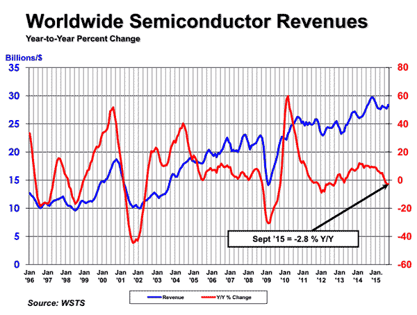 全球半導(dǎo)體銷售額2015年第三季年比下滑2.8%