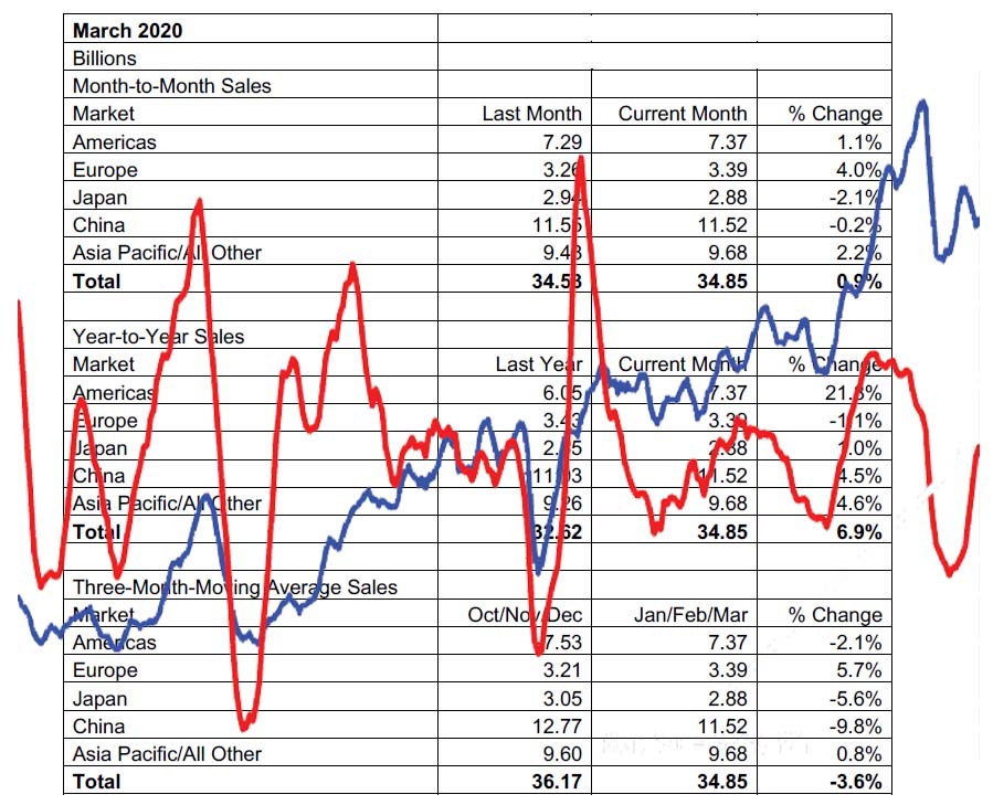【產(chǎn)通社,5月12日訊】來自美國半導(dǎo)體行業(yè)協(xié)會(Semiconductor Industry Association, SIA)的數(shù)據(jù)顯示,2020年首季全球半導(dǎo)體銷售額較去年第四季度稍微下滑,但是3月份的數(shù)值較上月及去年同期均呈現(xiàn)增長。SIA主席兼CEO John Neuffer認(rèn)為“現(xiàn)有銷售數(shù)據(jù)尚未充分反映新冠肺炎疫情(COVID-19)的影響! 數(shù)據(jù)顯示,第一季度全球半導(dǎo)體銷售額年增6.9%,達(dá)到1046億美元,和上季度相比下滑3.6%,符合季節(jié)性趨勢。其中,3月份全球半導(dǎo)體銷售額較上月增長0.9%,達(dá)到349億美元,較去年同期增加6.9%。 就地區(qū)銷售額來看,歐洲月增長4.0%,亞太/其他地區(qū)月增2.2%,而美洲月增1.1%,不過中國月減0.2%,日本月減2.1%。 和去年同期相比,美洲銷售額大增21.8%,亞太/其他國家年增4.6%,中國年增4.5%和日本年增1.0%,歐洲則年減1.1%。 產(chǎn)通社(365PR Newswire)產(chǎn)業(yè)分析師楊棋認(rèn)為,半導(dǎo)體產(chǎn)品是現(xiàn)代社會不可或缺的一部分,COVID-19改變了人們的生活和工作方式,也在影響細(xì)分領(lǐng)域的銷售額,來自醫(yī)療、安全和居家類領(lǐng)域的需求會折衷其他領(lǐng)域的下滑,整體銷售不會出現(xiàn)大的波動。(Lisa WU, 365PR Newswire)