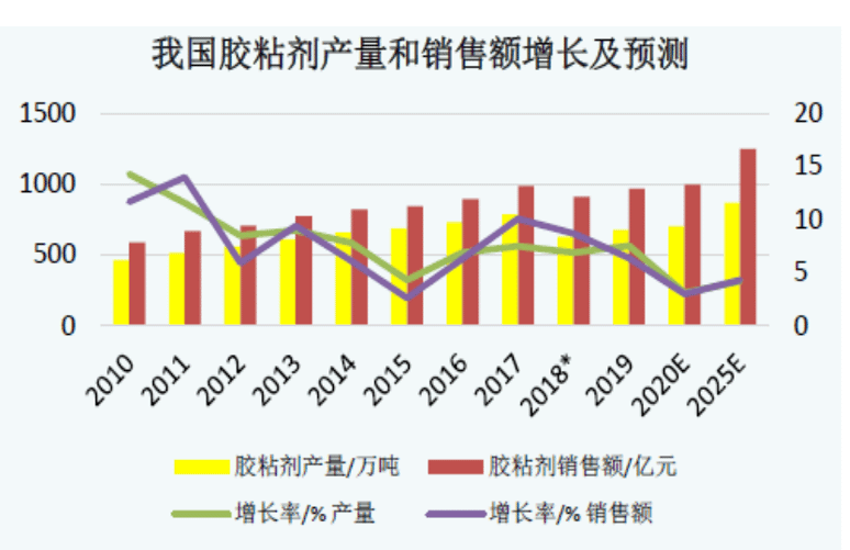 【產通社,4月10日訊】根據中國膠粘劑和膠粘帶工業(yè)協(xié)會統(tǒng)計,2019年我國膠粘劑行業(yè)總產量約679萬噸,銷售額971億元人民幣,分別較2018年增長7.54%和6.39%!笆濉逼陂g,我國膠粘劑行業(yè)保持穩(wěn)健增長,產量和銷售額年均增長率分別為6.6%和6.8%,行業(yè)發(fā)展模式也逐步從規(guī)模擴張型向質量和效益提升型轉變,企業(yè)技術創(chuàng)新能力、管理創(chuàng)新能力逐步得到提升。膠粘劑進口趨于平穩(wěn),出口增長迅猛,出口主要集中在制造業(yè)轉移國家(越南、印度等東南亞國家)和發(fā)達國家(美國、日本、韓國等)。 膠粘劑應用領域廣泛,無明顯的區(qū)域性特征,周期性或季節(jié)性特征亦不明顯。我國工程膠粘劑行業(yè)的快速發(fā)展,自動化的生產要求、產品的更新?lián)Q代、生產效率的提高、行業(yè)環(huán)保政策及標準的出臺與執(zhí)行等都有利于推動膠粘劑行業(yè)的健康可持續(xù)發(fā)展。 目前,國內產品技術水平和質量明顯提升,逐步進軍中高端產品市場,替代進口產品;產業(yè)結構逐漸優(yōu)化,產品附加值顯著提高,具體呈現(xiàn)出以下特點: (1)提升產品性能,實現(xiàn)替代進口 在全球化背景下,膠粘劑行業(yè)的競爭與技術交流促進國內企業(yè)不斷加大研發(fā)投入,提升生產技術水平,膠粘劑產品性能也在持續(xù)提升,國內企業(yè)競爭力顯著增強。過去膠粘劑主要依賴國外品牌,現(xiàn)今國產膠粘劑正以其顯著的性價比優(yōu)勢在各個應用領域逐步替代進口產品,在部分中高端產品細分市場上,國產膠粘劑產品指標已接近或達到國際同類產品水平。 國內經濟穩(wěn)步增長,膠粘劑產品全球化產業(yè)轉移,以及國內企業(yè)技術進步帶來的進口替代,都給國內企業(yè)帶來了良好的發(fā)展機遇和持續(xù)增長的市場空間,已具備較強研發(fā)實力和產能規(guī)模的國內膠粘劑龍頭企業(yè)在進口替代過程中將成為受益方。 (2)新興市場發(fā)展帶來膠粘劑應用領域擴寬 隨著新興行業(yè)的發(fā)展以及膠粘劑產品改性技術的提高,膠粘劑的新型應用領域越來越廣泛。5G通信、新能源汽車、復合材料、智能終端設備、手持設備及顯示器、高鐵、城市軌道交通、汽車輕量化及后市場維修、航空航天、新能源、工業(yè)裝配自動化、裝配式住宅產業(yè)化、綠色包裝材料等戰(zhàn)略性新興市場對膠粘劑產品的需求強勁增長。高要求、高標準、高附加值的新興市場,促進企業(yè)進行科技創(chuàng)新及產品結構優(yōu)化升級,進而帶動產品質量和檔次的提高。 (3)產品的環(huán)保要求不斷提高 隨著我國環(huán)保意識的日益提高以及環(huán)保法規(guī)的日趨完善,循環(huán)經濟和綠色產業(yè)的國策逐漸深入人心,綠色環(huán)保已成為行業(yè)技術發(fā)展的主流,對膠粘劑、及粘接過程的效率和環(huán)境污染防控也提出了越來越高的要求。水基型、熱熔型、無溶劑型、紫外光固化型、高固含量型及生物降解型等環(huán)境友好型膠粘劑產品受到市場的青睞和重視,以其替代傳統(tǒng)的、環(huán)境污染嚴重的溶劑型膠粘劑制品,將成為膠粘劑行業(yè)技術改造與升級換代的主題和方向。 (4)行業(yè)集中度和技術水平不斷提高 我國膠粘劑市場一直以來以中小企業(yè)為主,市場集中度不高。近年來,隨著用戶對膠粘劑產品質量、性能和環(huán)保節(jié)能要求的日益提高,市場競爭日趨激烈,低端膠粘劑產品利潤趨薄,加上原材料價格上漲、勞動力成本提升、環(huán)保監(jiān)管嚴格,極大地壓縮了中小企業(yè)的利潤空間,一些技術水平落后、缺乏自主創(chuàng)新能力、高污染、高能耗的小型生產企業(yè)相繼被淘汰。 目前,國內龍頭企業(yè)持續(xù)加大研發(fā)投入,借助資本市場優(yōu)勢加快發(fā)展,這些企業(yè)的生產質量、研發(fā)實力可以和外資企業(yè)相媲美。行業(yè)整體呈現(xiàn)規(guī);⒓s化發(fā)展趨勢,行業(yè)集中度和技術水平不斷提高。(張怡,產通發(fā)布)