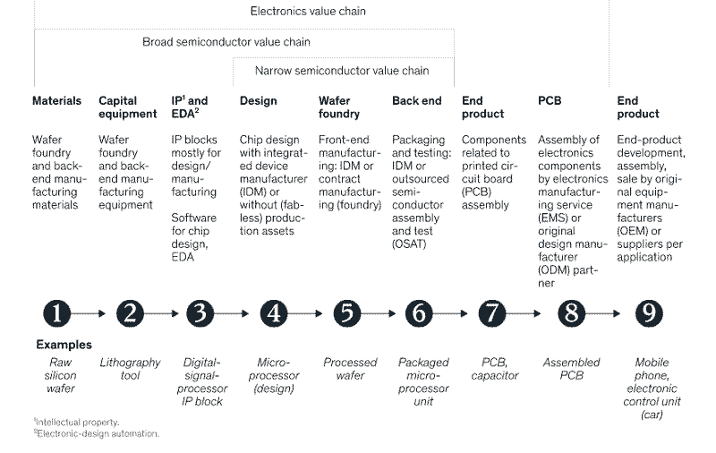 【產(chǎn)通社,12月24日訊】今天的半導(dǎo)體公司正面臨著一系列挑戰(zhàn),即使晶圓廠滿負(fù)荷運(yùn)轉(zhuǎn),也無法滿足需求。該行業(yè)包括許多不同的細(xì)分市場,如存儲器、邏輯、模擬、分立、光學(xué)元件和傳感器。單個半導(dǎo)體公司及其生產(chǎn)基地傾向?qū)W⒂谔囟ǖ募?xì)分市場,他們的最終客戶通常需要所有半導(dǎo)體領(lǐng)域的產(chǎn)品,依賴于多家供應(yīng)商。因此,缺少一個專門的芯片會使最終產(chǎn)品的生產(chǎn)陷入停頓,即使所有其他組件都可用。 半導(dǎo)體產(chǎn)品制作過程復(fù)雜和多層次。當(dāng)考慮所有生產(chǎn)階段時,整個過程從材料采購延伸到后端制造。對于每個產(chǎn)品領(lǐng)域,大多數(shù)公司專注于三個或更少的步驟,并可能將一些活動,如印刷電路板組裝,外包給合作伙伴。在后端制造之后,半導(dǎo)體成為電子價值鏈的一部分。 半導(dǎo)體價值鏈從材料采購延伸到后端制造 過去20年里,行業(yè)價值鏈在許多環(huán)節(jié)中變得越來越整合,在每個領(lǐng)域都出現(xiàn)了一些冠軍企業(yè)。因此,專業(yè)知識通常集中在某些市場(例如,美國的無晶圓廠企業(yè)(即僅芯片設(shè)計(jì))和設(shè)備制造企業(yè)最多)。沒有一個本地市場具備端到端半導(dǎo)體設(shè)計(jì)和制造所需的所有能力,專業(yè)知識的集中已經(jīng)在價值鏈上形成了一個相互依賴的網(wǎng)絡(luò)。 半導(dǎo)體行業(yè)在某些細(xì)分市場中變得越來越整合 專業(yè)知識的集中傳達(dá)了一些優(yōu)勢,因?yàn)樗ǔT试S公司共享資源,如電力供應(yīng),即使它們是競爭對手,這有助于降低成本。擁有合適技能的員工也可能被吸引到專業(yè)集群,從而形成強(qiáng)大的人才庫。但這種相互依存關(guān)系也意味著,局部沖擊可能會產(chǎn)生全球性影響,比如2011年泰國的洪水導(dǎo)致該國多家內(nèi)存后端晶圓廠停產(chǎn),并推高了內(nèi)存芯片的價格高出百分之十,因?yàn)闆]有一個本地市場或公司具備端到端半導(dǎo)體設(shè)計(jì)和制造所需的所有能力。 R&D在半導(dǎo)體行業(yè)的平均支出非常高 對于半導(dǎo)體制造商來說,制造更小的節(jié)點(diǎn)尺寸一直是成功的途徑。幾十年來,隨著半導(dǎo)體公司不斷縮小技術(shù)節(jié)點(diǎn)的規(guī)模,芯片上的晶體管數(shù)量每兩年翻一番——這是摩爾定律預(yù)測的速度。然而,近年來,翻倍的速度已經(jīng)放緩,因?yàn)殡S著行業(yè)接近單個芯片上可以包含的晶體管數(shù)量的物理極限,技術(shù)挑戰(zhàn)增加了。盡管如此,公司仍將試圖推動這項(xiàng)技術(shù),因?yàn)榈?025年,最小節(jié)點(diǎn)芯片(7納米及以下)的平均需求增長將比供應(yīng)增長高出4個百分點(diǎn)。 節(jié)點(diǎn)尺寸的重要性因設(shè)備細(xì)分市場而異,對尖端芯片的需求在某些類別中將比其他類別增長更多。由于客戶期望計(jì)算密集型應(yīng)用的高性能,在最小可用技術(shù)節(jié)點(diǎn)上設(shè)計(jì)芯片的半導(dǎo)體公司可能在這些領(lǐng)域具有明顯的優(yōu)勢。在其他領(lǐng)域,較大的節(jié)點(diǎn)通常是合適的,因?yàn)榭蛻魧Ξ?dāng)前的芯片性能感到滿意,或者需要特定的功能,如快速切換,并且認(rèn)為轉(zhuǎn)移到較小的節(jié)點(diǎn)尺寸沒有什么優(yōu)勢。 設(shè)備制造商可以通過創(chuàng)造實(shí)現(xiàn)前沿創(chuàng)新所需的機(jī)器來抓住增長。此外,他們可以創(chuàng)造出包括先進(jìn)技術(shù)的設(shè)備,以優(yōu)化過程控制,以及產(chǎn)量監(jiān)測和提高。 半導(dǎo)體行業(yè)如何保持領(lǐng)先? 對特定成熟節(jié)點(diǎn)的需求(40到65納米)也高于平均水平,因?yàn)樗鼈冇糜谄嚭推渌P(guān)鍵產(chǎn)品。然而,他們的利潤率歷來較低,因此有時很難支持?jǐn)U展成熟節(jié)點(diǎn)容量的商業(yè)案例。如果建造新的晶圓廠,高昂的前期成本將意味著公司最初從這些晶圓廠獲得的利潤將低于從資產(chǎn)已折舊的現(xiàn)有晶圓廠獲得的利潤。為了確保長期穩(wěn)定的回報(bào),玩家可以努力從客戶那里獲得硬性承諾,以保證新晶圓廠上線后的高利用率。 通過“超越摩爾”實(shí)現(xiàn)差異化 除了減小結(jié)構(gòu)尺寸,一些半導(dǎo)體公司還在追求“比摩爾更多”的創(chuàng)新,以使他們的產(chǎn)品與眾不同。例如,一些公司正在開發(fā)基于硅以外材料的半導(dǎo)體;衔锇雽(dǎo)體材料,如碳化硅(SiC)和氮化鎵(GaN),特別適用于要求高功率和高頻率的應(yīng)用,因?yàn)樗鼈兿拗屏四芰繐p失,并允許形成更小的形狀因子。 對提高可持續(xù)性和電氣化的推動正在刺激SiC和GaN功率器件的采用,這兩個類別的復(fù)合年增長率(CAGR)預(yù)計(jì)將遠(yuǎn)遠(yuǎn)超過功率半導(dǎo)體市場整體5%的預(yù)測增長率。 預(yù)計(jì)氮化鎵和碳化硅功率器件的增長率會很高 設(shè)備制造商可以通過推出專門加工SiC或GaN的機(jī)器來促進(jìn)創(chuàng)新并抓住新的機(jī)遇。鑒于對這些機(jī)器的需求將低于對主流前沿設(shè)備的需求,制造商應(yīng)仔細(xì)審查開發(fā)這些最初利基產(chǎn)品的商業(yè)案例。代工廠可以為更廣泛的無晶圓廠半導(dǎo)體廠商提供基于SiC和GaN的創(chuàng)新技術(shù)。 對創(chuàng)新功能的關(guān)注在高增長細(xì)分市場(如物聯