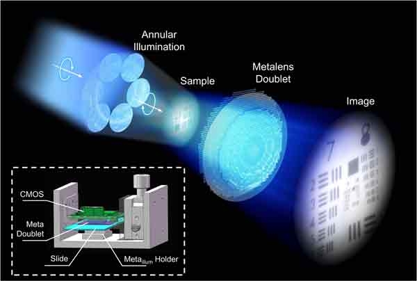 【產(chǎn)通社,6月24日訊】南京大學(xué)研究團(tuán)隊(duì)開(kāi)發(fā)了一種解決方案,可以提高超透鏡(Metalens)在顯微鏡應(yīng)用中的性能。這種基于超透鏡的顯微鏡實(shí)現(xiàn)了寬視場(chǎng)(FOV)和高分辨率成像,解決了這兩個(gè)關(guān)鍵參數(shù)之間的內(nèi)在權(quán)衡。 根據(jù)研究人員,這兩個(gè)參數(shù)是迄今為止阻止超透鏡實(shí)現(xiàn)與傳統(tǒng)顯微鏡相當(dāng)性能的攔路虎。目前,超透鏡在實(shí)際顯微鏡應(yīng)用中面臨巨大挑戰(zhàn),離軸像差嚴(yán)重限制了超透鏡的FOV和分辨能力,這是在實(shí)際顯微鏡中使用超透鏡的主要限制。 在他們的系統(tǒng)架構(gòu)中,研究人員使用了兩個(gè)超透鏡的雙透鏡配置,分別位于透明硅石基底的相對(duì)側(cè),并結(jié)合了環(huán)形照明。這兩個(gè)超透鏡由氮化硅納米鰭組成,制作成具有精確尺寸的高縱橫比正方形,以精心計(jì)算的間隔排列。這種設(shè)計(jì)方法減輕了離軸像差,提高了分辨率,從而優(yōu)化了成像性能。 “我們的超透鏡顯微鏡具有高達(dá)150μm的FOV和310nm的半節(jié)距分辨率,遠(yuǎn)遠(yuǎn)超過(guò)了有史以來(lái)報(bào)道的最高分辨率的超透鏡顯微鏡,”通訊作者李濤教授說(shuō)。 研究人員展示的原型具有1mm的FOV,半節(jié)距分辨率為620納米。此外,該原型很緊湊,尺寸僅4×4×5cm。使用該超顯微鏡原型對(duì)宮頸癌細(xì)胞進(jìn)行成像,研究人員捕捉了同一FOV內(nèi)癌癥在不同階段發(fā)展的圖像,揭示了重要的細(xì)胞細(xì)節(jié),如核增大、變形和分裂。 “我們的實(shí)驗(yàn)結(jié)果展示了高質(zhì)量的顯微生物圖像,可與緊湊型原型中的傳統(tǒng)顯微鏡相媲美,突出了其在便攜式和便利設(shè)置中的潛在應(yīng)用,”李教授說(shuō)。除了傳統(tǒng)顯微鏡不適用的研究場(chǎng)景,這項(xiàng)技術(shù)還可以集成到臨床、生物醫(yī)學(xué)自動(dòng)化領(lǐng)域的微電子器件和系統(tǒng)中。 剪報(bào)來(lái)源: https://www.photonics.com/Articles/Doublet_Design_Overcomes_a_Metalens_Bottleneck_in/p5/a71128 論文鏈接: https://www.doi.org.0.1117/1.AP.7.4.046006)