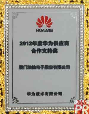 【產(chǎn)通社,8月15日訊】廈門法拉電子股份有限公司(XIAMEN FARATRONIC CO., LTD.)官網(wǎng)消息,其榮獲2012年度華為供應(yīng)商合作支持獎。