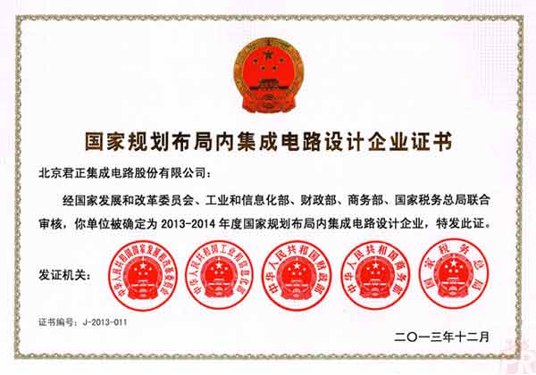 北京君正被認定為2013-2014年度國家規(guī)劃布局內(nèi)集成電路設(shè)計企業(yè)