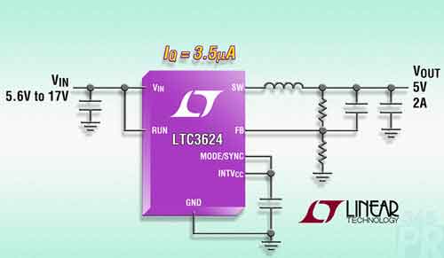 【產(chǎn)通社,4月18日訊】凌力爾特公司(Linear Technology Corporation)消息,其LTC3624高效率、17V輸入同步降壓型穩(wěn)壓器可對低至0.6V的輸出提供高達2A連續(xù)輸出電流。同步整流提供高達95%的效率,而在突發(fā)模式(Burst Mode)工作時僅需3.5µA無負載靜態(tài)電流。